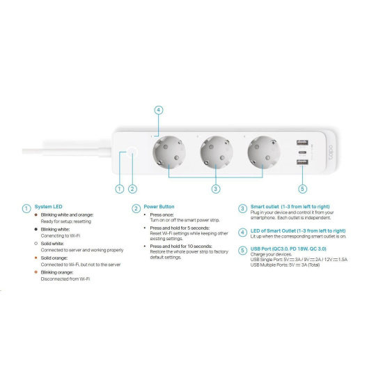 | Obsah balenia | Smart Wi-Fi Power Strip Tapo P300 Rýchly štartovací sprievodca |