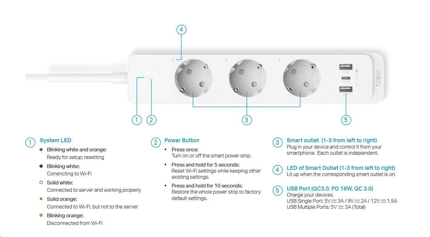 | Obsah balenia | Smart Wi-Fi Power Strip Tapo P300 Rýchly štartovací sprievodca |