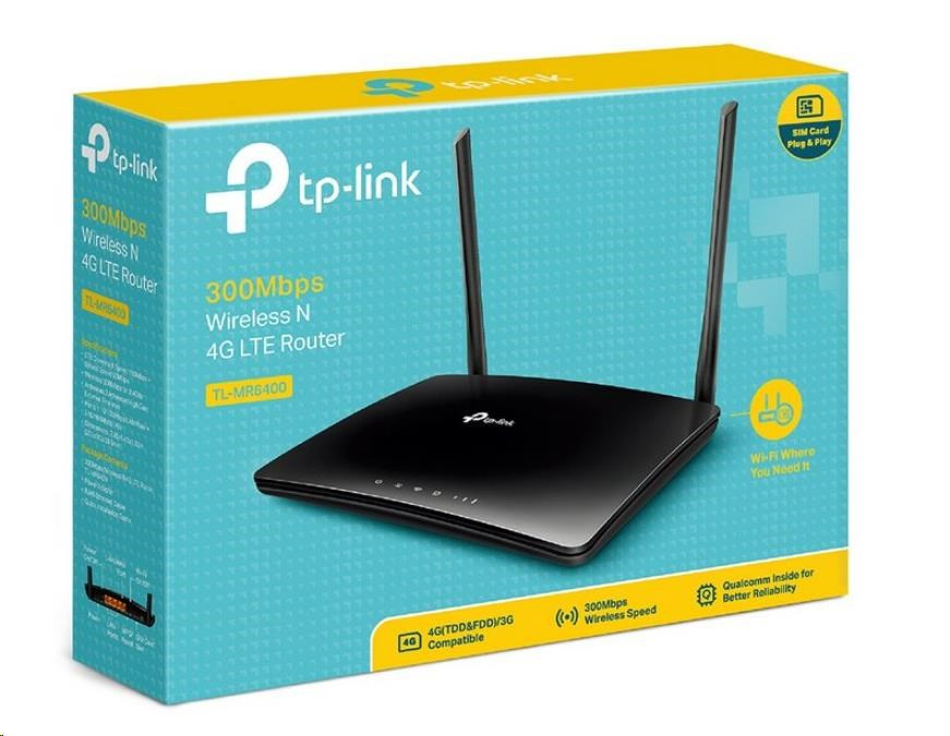 | Package Contents | 300Mbps Wireless N 4G LTE Router TL-MR6400 Power Adapter RJ45 Ethernetkábel Rýchly inštalačný sprievodca |
