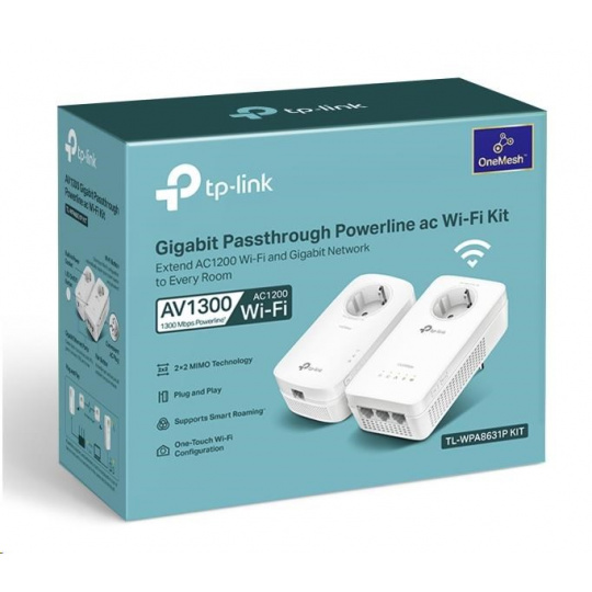 .TP-Link TL-WPA8631PKIT OneMesh/EasyMesh WiFi5 průchozí powerline set (AC1200,AV1300,2,4GHz/5GHz,3xGbELAN)