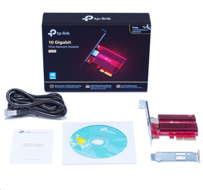 | Balenie obsahuje | 10 Gigabit PCIe Network Adapter (TX401) Štandardné/nízkoprofilové konzoly Rýchly sprievodca inštaláciou Zdrojový CD disk 1.5 m CAT6A Ethernetový kábel |