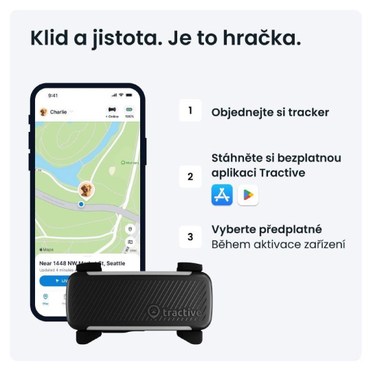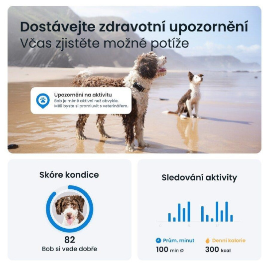 GPS tracker Tractive vás informuje, koľko sa váš pes pohybuje, spí a štekať. Môžete nastaviť ciele pohybu, kontrolovať Skóre kondície a porovnávať svojho psa s inými plemenami.Odolná konštrukcia