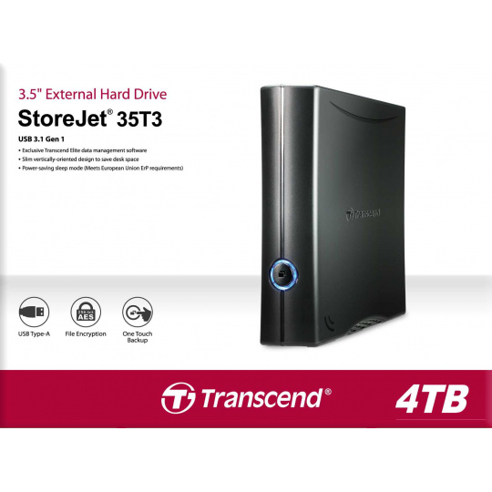 Externý pevný disk TRANSCEND 3,5" USB 3.1 StoreJet 35T3, 4 TB, čierna, Turbo