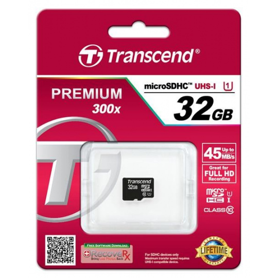 Karta TRANSCEND MicroSDHC 32GB Premium, Class 10 UHS-I 300x, bez adaptéra