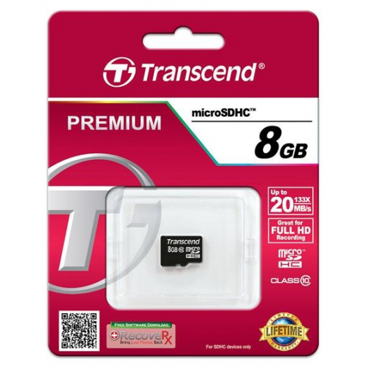 Karta TRANSCEND MicroSDHC Class 10 8GB, bez adaptéra