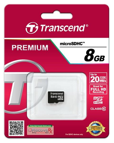 Karta TRANSCEND MicroSDHC Class 10 8GB, bez adaptéra