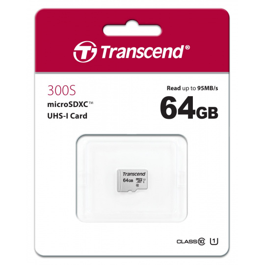 Karta TRANSCEND MicroSDXC 64GB 300S, UHS-I U1 + adaptér