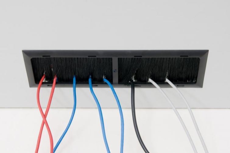 Káblové vstupy v zadnej časti rozvádzača sú zakryté vylamovacími záslepkami. Proti prenikaniu prachu je možné káble v otvore utesniť záslepkou s kefou. Na ochranu káblov pred poškodením slúži plastový rámček (obe sú súčasťou príslušenstva rozvádzača).