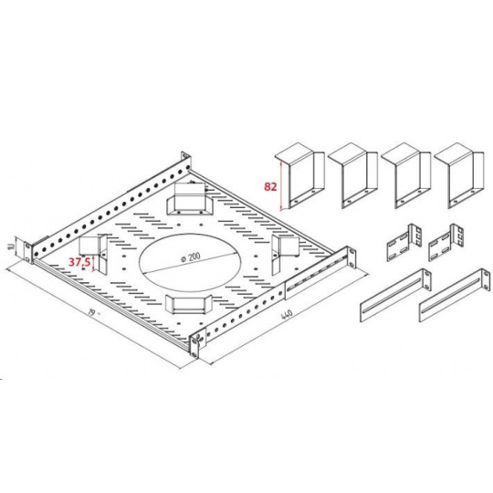 držiak pre stredovú vertikálu pre 19" príslušenstvo.................................. 2x montážna sada