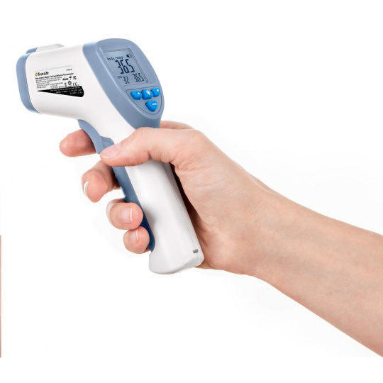 Využívá technologie infračerveného záření a dosahuje tak během okamžiku velmi přesných výsledků. Teploměr stačí přiblížit k předmětu a do jedné sekundy získáte výsledek měření.