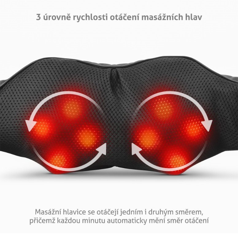 Masážne hlavice sa otáčajú dopredu a dozadu a každú minútu automaticky menia smer.