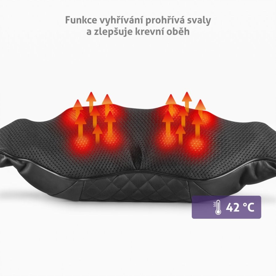 Dve rotačné hlavice so štyrmi vyhrievacími hĺbkovými masážnymi uzlami poskytujú celkovo 8 masážnych uzlov na zážitok ako pri hĺbkovej masáži Shiatsu.