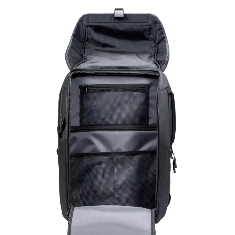 Už sa nikdy nemusíte báť dažďa. Vďaka vodeodolným materiálom s PU povrchovou úpravou, zipsom a hornému krytu s certifikáciou IPX4 ostanú vaše veci suché. Odolná priehradka chráni notebooky do veľkosti 17 palcov, zatiaľ čo integrovaná kapsa na AirTag vám umožní mať batoh neustále pod dohľadom.