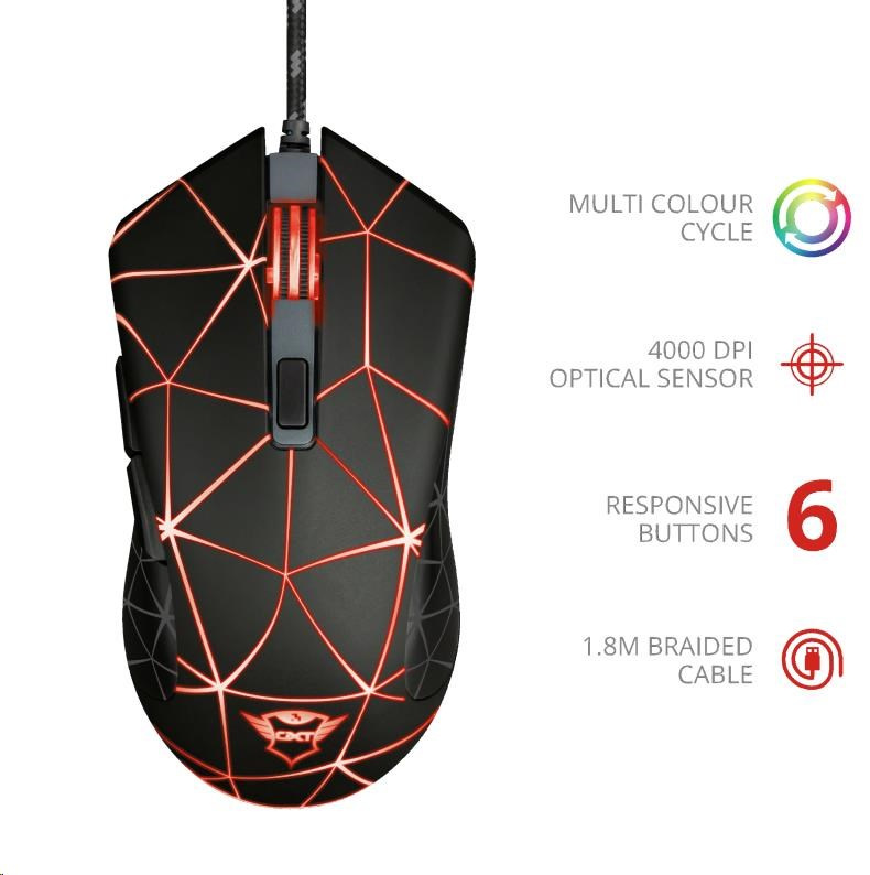 Presná herná myš s textúrovanými stranami a jedinečným dizajnom s LED svetlom