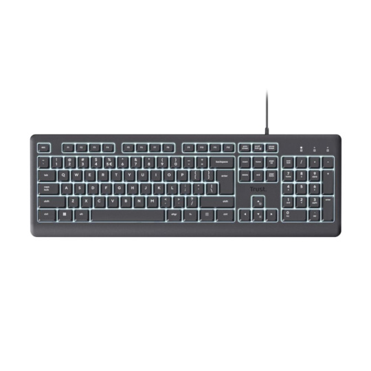 TRUST klávesnice Primo, Membránová, USB-C, Podsvícená, černá CZ/SK
