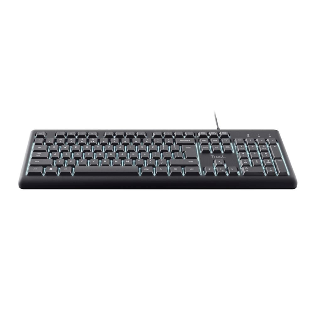 TRUST klávesnice Primo, Membránová, USB-C, Podsvícená, černá CZ/SK