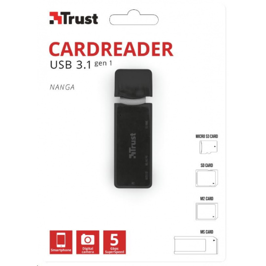 Niektoré karty vyžadujú adaptér (zvyčajne sa dodáva spolu s pamäťovou kartou) Záruka 2 roky Celková veľkosť (mm) 70 x 24 x 13 Celková hmotnosť 15 g Typ USB USB-A KONEKTIVITA Verzia USB 3.1 INPUT Zdroj energie USB KOMPATIBILITA Podporuje SDHC/SDXC? áno Kompatibilné karty M2, MS, micro-SD, SD Kompatibilné softvérové platformy Windows 10, Windows 7, Windows 8, Mac OS