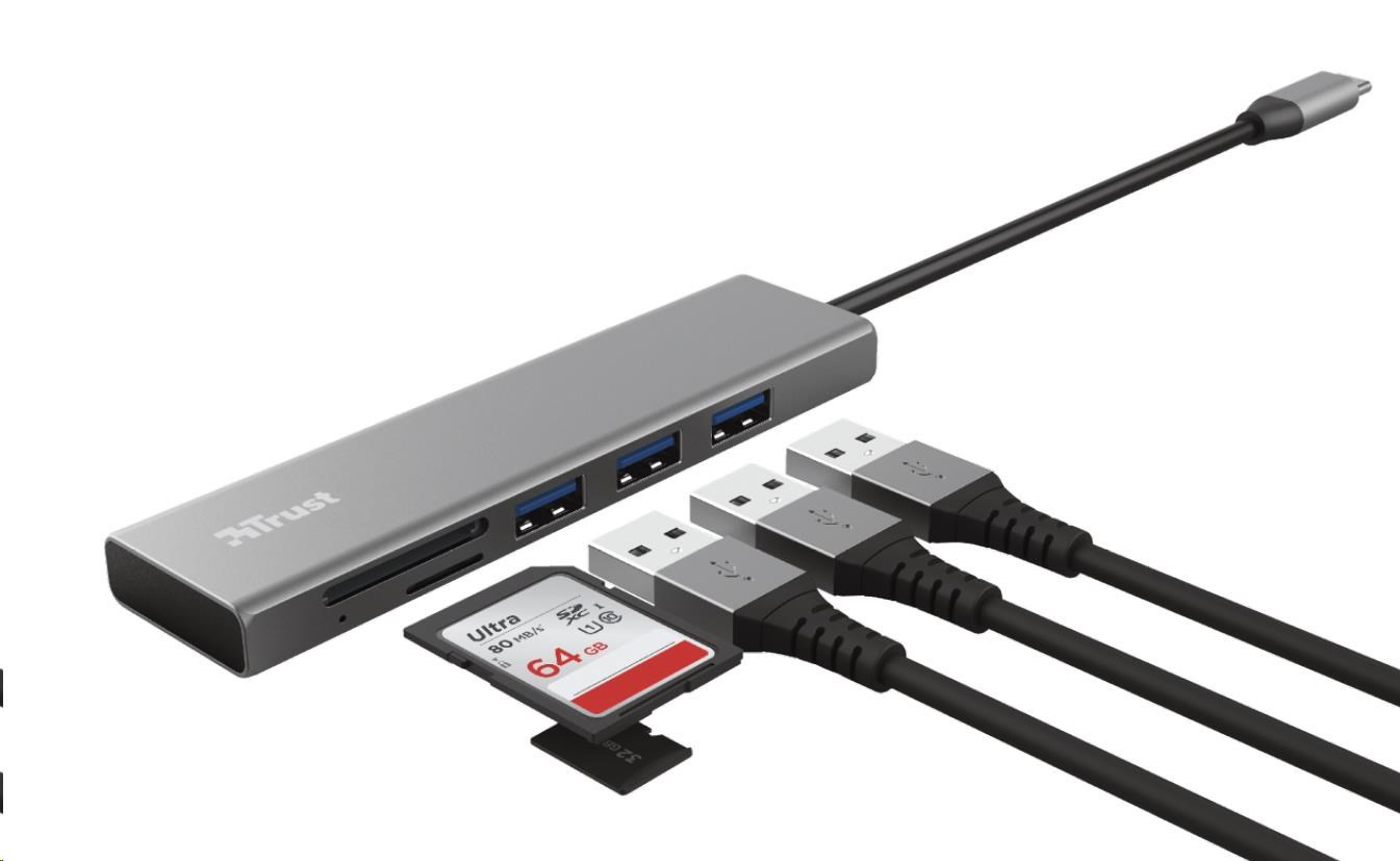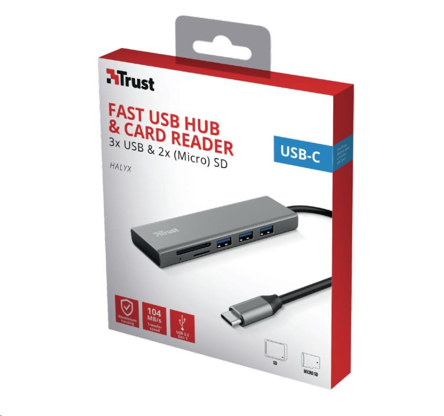 Rozbočovač TRUST HALYX, rýchly rozbočovač USB-C a čítačka kariet