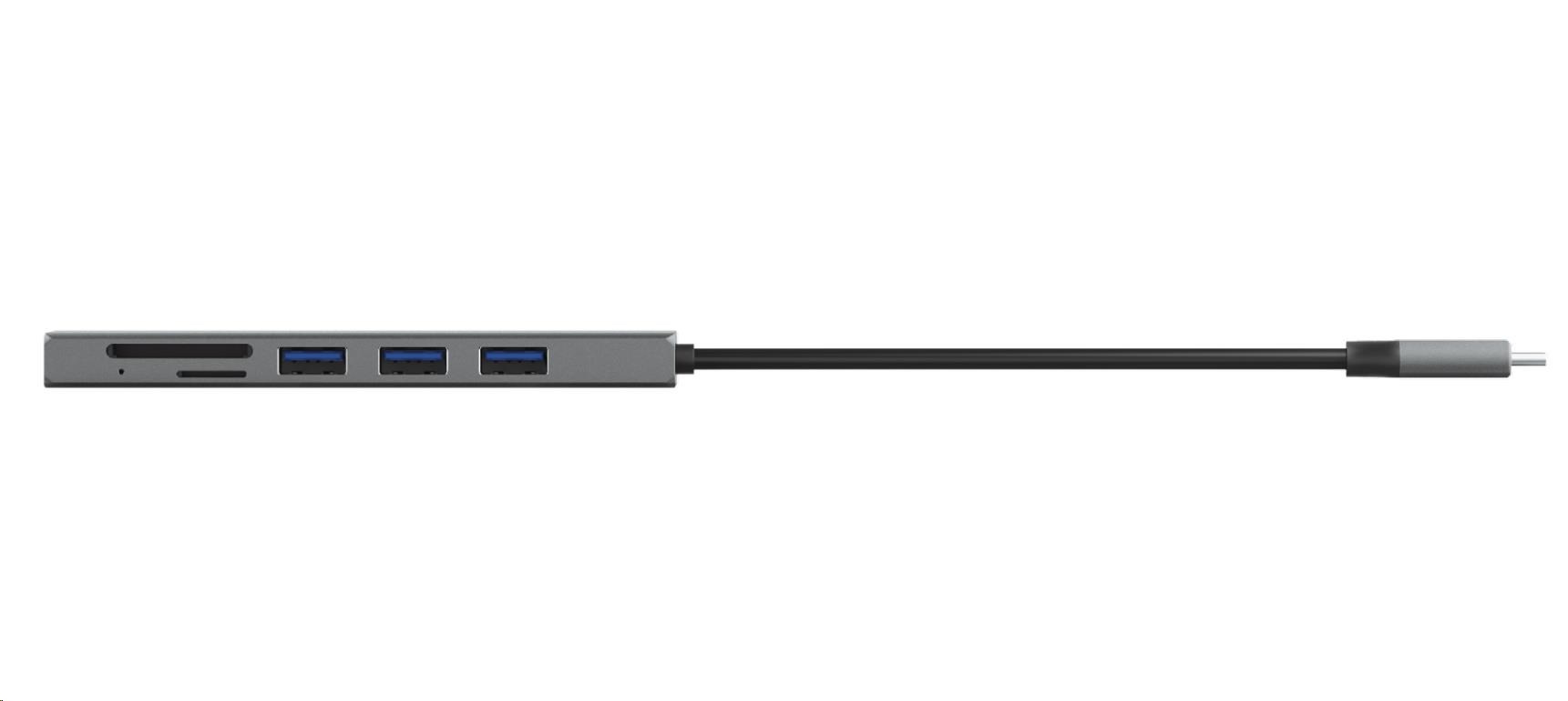 Kompaktný hliníkový 3-portový rozbočovač USB s čítačkou kariet (micro) SD a pripojením USB-C