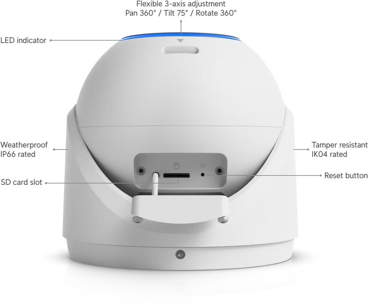 Popis produktu Ubiquiti UniFi IP turret hybrid kamera UVC-G6-Pro-Turret-W disponuje 8MP snímačem (3840 x 2160 px) při 30fps, variofokálním objektivem (5,85mm-13,8mm), kombinovaným IR/bílé světlo přísvitem pro noční vidění na vzdálenost až 40m, krytím IP66 a IK4 a vestavěnými mikrofony. Do sítě lze kameru připojit pomocí 1Gbit LAN s podporou napájení přes PoE+ s maximální spotřebou 15W. Klíčové vlastnosti • 8MP 30fps video (3840 x 2160 px) • Pokročilá AI detekce - odfiltrování falešných poplachů a spolehlivá detekce osob a vozidel • Hybridní Smart přísvit - IR/LED přísvit s dosahem 40m • Podporuje lokální záznam na microSD kartu nebo na NAS • Spravováno prostřednictvím UniFi Protect • IP66 kryt odolný proti povětrnostním vlivům • IK4 odolnost vůči vandalům • Napájení pomocí 802.3at 42.5-57V PoE+ Obsah balení • Zařízení • Šroubky, hmoždinky, nářadí • Držák na zeď/strop Technické parametry Kamera Zoom (optický):2,36x Typ objektivu:Varifokální - motorický Objektiv [mm]:5,85 až 13,8 (nastavitelný) Přísvit:Hybridní IR / bílé světlo Dosah přísvitu [m]:40 Pozorovací úhel [°]:45,5 až 113,8 Režim den/noc:Hybridní IR cut filtr / barevný Obrazový senzor ["]:1/1.2 Obraz Rozlišení:8MP Max. rozlišení [pixely]:3840 x 2160 (4K UHD) Konektory a rozhraní Slot na paměťové karty:microSD Audio:2 Mikrofony, Reproduktor Rychlost LAN:(1) 10/100/1000Mbps Napájení Napájení přes PoE:802.3at, 42 .. 57V DC Typ napájení:PoE Max. spotřeba energie [W]:15 Fyzické charakteristiky Stupeň krytí:IP66 Použití:Venkovní Antivandal (ochrana proti nárazu):IK4 Tlačítka:Reset Provozní teplota [°C]:-30 až 50 Hmotnost [g]:1200 Šířka [mm]:117 Výška [mm]:117 Hloubka [mm]:117 Barva:Bílá Obecné Kamerová řada:UniFi Protect Technologie a vymoženosti:Čtení SPZ, Face detection, Detekce vozidla, Multi-TOPS AI Engine.