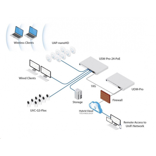 UniFi Dream Machine Pro od spoločnosti Ubiquiti Networks je komplexné sieťové riešenie pre malé a stredné podniky. Je to veľmi výkonné zariadenie s výškou 1U v 19" stojane a kombinuje tieto funkcie: