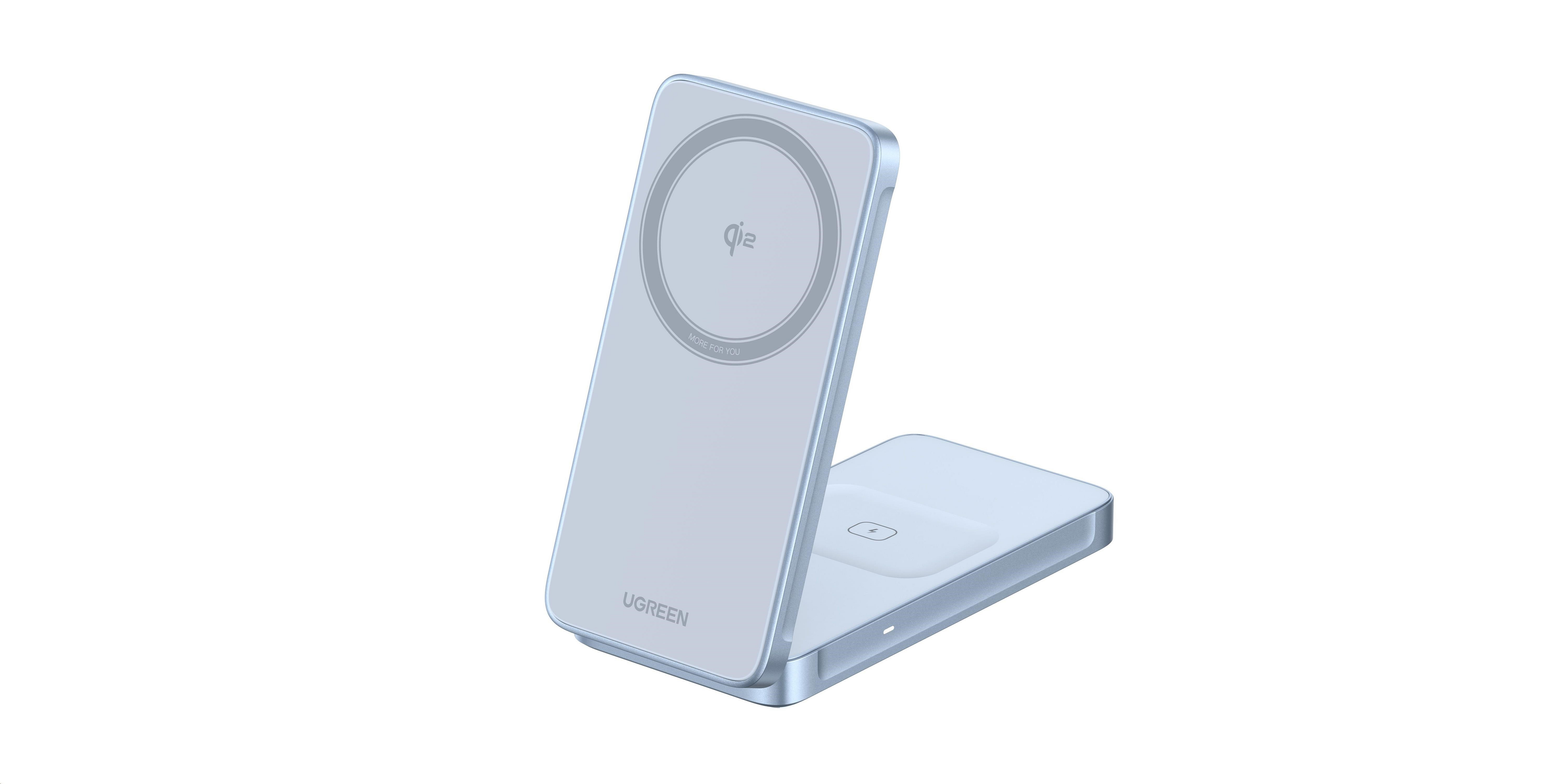 UGREEN magnetická bezdrátová nabíječka 2v1 MagFlow Qi2.2, 25W, MagSafe, stříbrná
