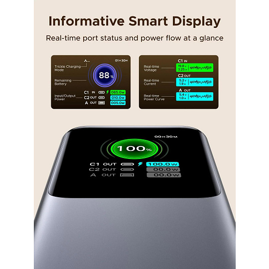 | Input | USB - C1:5V/3A?9V/3A?12V/3A?15V/3A?20V/5A(100W Max) USB - C2:10V/2.5A?5V/3A?9V/3A?12V/3A?15V/3A?20V/5A(100W Max) USB - A:5V/2.5A?9V/2A?12V/1.5A?5.5 - 11V/3A(33W Max) |