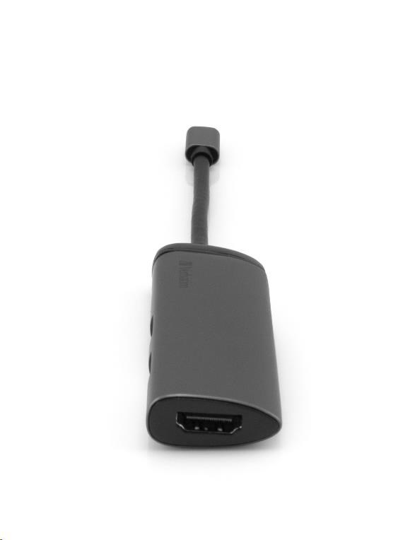 VERBATIM 49140 Multiportový HUB USB-C, 2x USB 3.0, 1x USB-C, HDMI, šedý dok