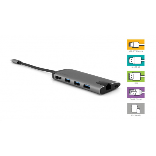 VERBATIM 49142 Multiportový HUB USB-C, 3x USB 3.0, 1x USB-C, HDMI, LAN, SD, microSD, šedý dok
