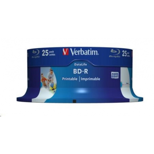 VERBATIM BD-R SL Datalife (25-pack)Blu-Ray/Spindle/6x/25GB Wide Printable