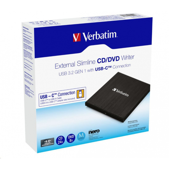 VERBATIM externá mechanika DVD-RW Rewriter USB-C, čierna