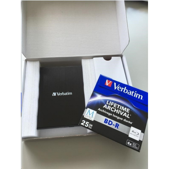 VERBATIM Slimline Blu-ray Rewriter USB 3.0 Bezplatný BR disk 25 GB (CD DVD BD Mdisc)