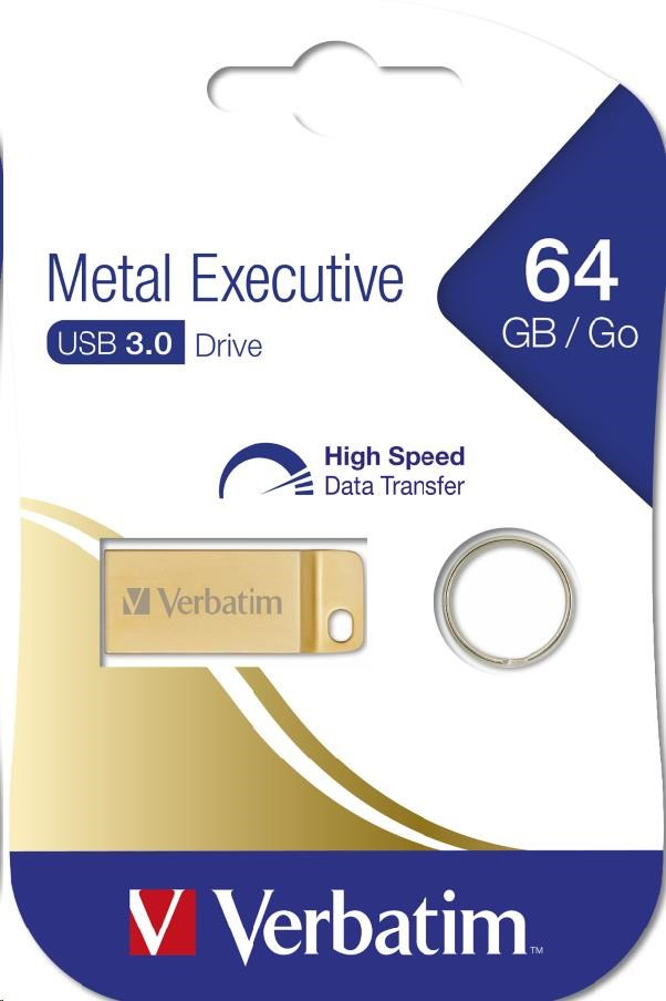 VERBATIM Flash Disk 64GB Metal Executive, USB 3.0, zlatá
