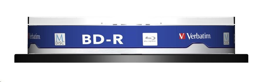 Verbatim M-Disc BD-R Verbatim M-Disc predstavuje nový štandard v oblasti digitálneho ukladania dát, ktorý je navrhnutý na uchovávanie a ochranu súborov vyrytím informácií do patentovanej vrstvy, ktorá je pevná ako skala a odolná voči svetlu, teplote a vlhkosti. Testovanie podľa priemyselnej normy ISO/IEC 10995 spoločnosťou Millenniata ukázalo, že očakávaná životnosť diskov M-Disc DVD je 1 332 rokov, pričom len 5 % diskov vykazuje známky straty údajov po 667 rokoch. Priemerná dĺžka života je preto niekoľko sto rokov. To znamená, že keď ukladáte svoje vzácne fotografie, hudobné knižnice, lekárske dokumenty alebo iné údaje, môžete si byť istí, že sú na disku, ktorý vydrží celé generácie. Vďaka vynikajúcej kompatibilite možno na disk M-Disc BD-R zapisovať a čítať z neho vo všetkých súčasných mechanikách Bluray. Parametre: Kapacita: 25 GB Rýchlosť: 4x Spôsob balenia: balenie po 10 ks na vreteno Povrch disku: potlačiteľný na atramentových tlačiarňach Tlačová plocha: 40 - 118 mm..