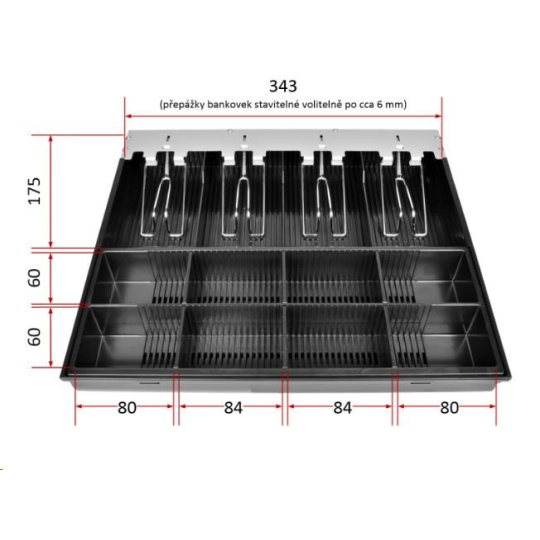 Vyberateľný mincovník a priečinok bankoviek s ľubovoľne nastaviteľnými priehradkami