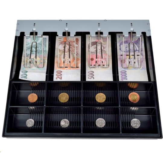 | Prihrádky | 4× na bankovky 8× na mince - vyberateľný mincovník |