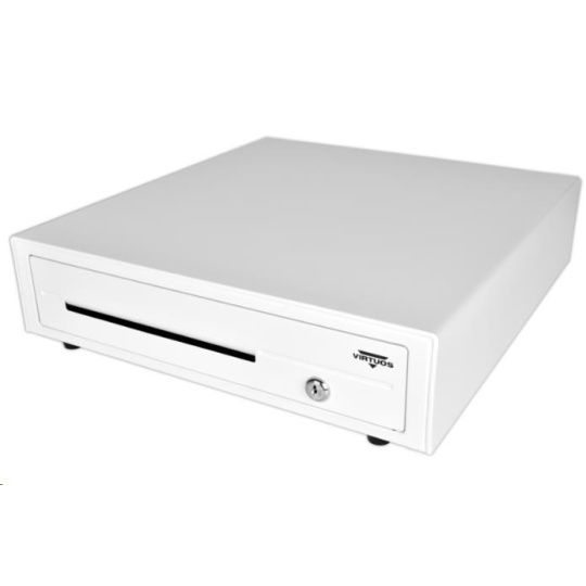Virtuos pokladní zásuvka C420D - s kabelem, kovové držáky, 9-24V, bílá