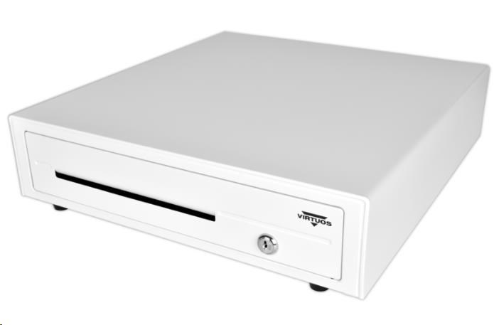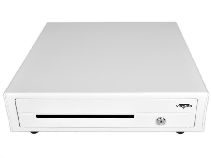 Virtuos pokladní zásuvka C420D - s kabelem, kovové držáky, 9-24V, bílá