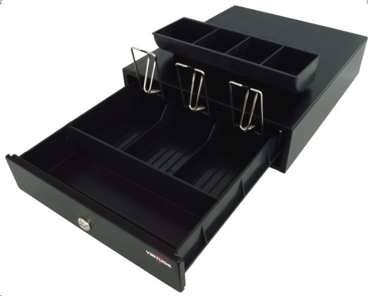 Pokladničná zásuvka Virtuos micro EK-300C, 9V-24V, s káblom 24V, viazač 3/4, čierna