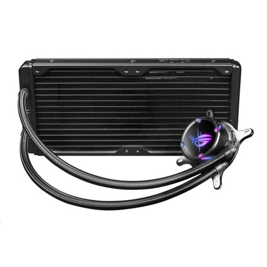 | Obsah balenia | 1 x kvapalinový chladič (vopred nanesená tepelná zmes) 1 x balenie príslušenstva so skrutkami a držiakmi 2 x 140 mm ARGB ventilátor chladiča 1 x USB kábel na ovládanie softvéru 1 x kábel rozdeľovača ventilátorov 1:2 1 x kábel rozdeľovača ventilátorov 1:4 ARGB 1 x stručná príručka 1 x nálepka ROG |