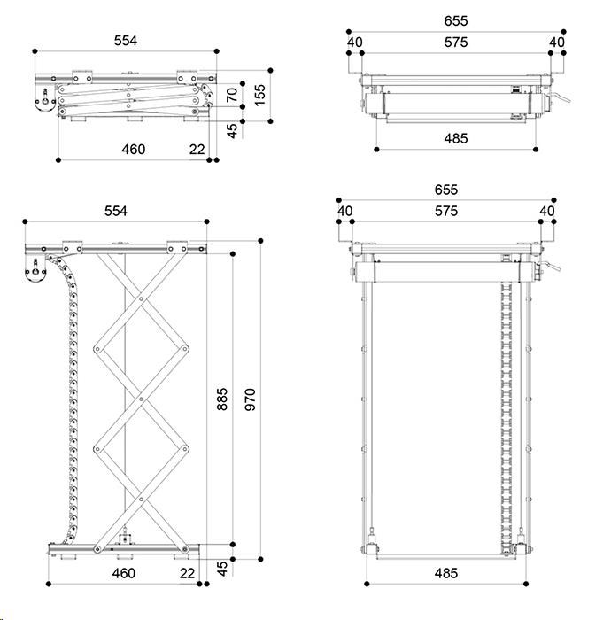 - Rozmery uzavretého výťahu 575 x 155 x 554 mm (Š x V x H)