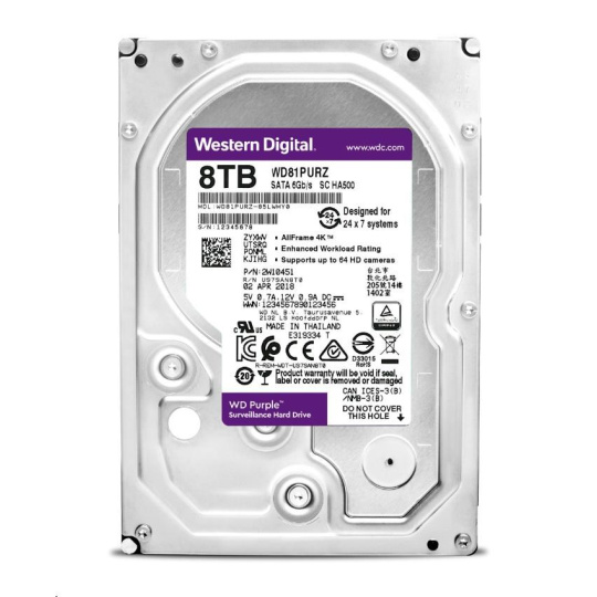 WD PURPLE WD85PURZ 8TB, SATA III 3.5", 256MB 5640RPM, 215MB/s, Low Noise, CMR