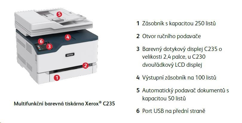 Zoznámte sa s farebnou tlačiarňou Xerox® C235