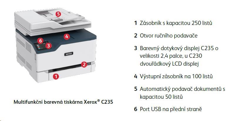 Seznámte sa s farebnou tlačiarňou Xerox® C235