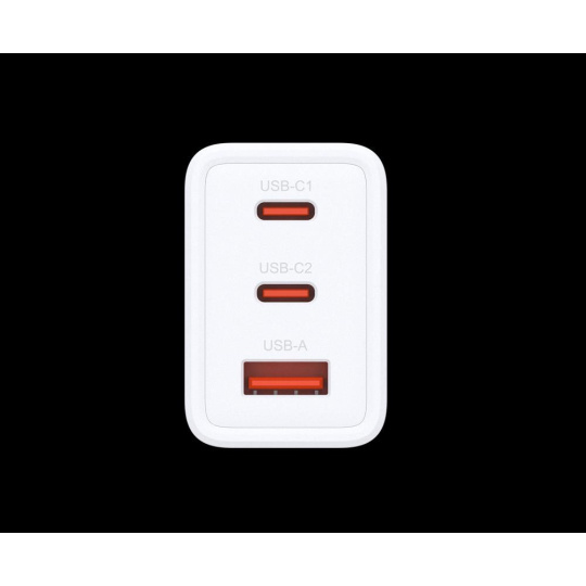 Technologie GaN: Umožňuje výkonné, efektivní a bezpečné nabíjení s komplexní bezpečnostní ochranou 65W rychlé nabíjení: Rychlé nabíjení vašeho notebooku, tabletu, mobilního telefonu a dalších s výstupem až 65W PD 3.0 Tři porty USB-C/USB-A: Obsahuje USB-C x 2 a USB-A x 1 pro nabíjení 3 zařízení současně Vyměnitelné zástrčky: Kompatibilní s univerzálními standardy AU, EU, UK a USA, ideální pro cestovatele Bezpečnostní ochrana: Napájení je deaktivováno při chybách způsobených nadproudem, přepětím, přebitím, přehřátím nebo zkratem.