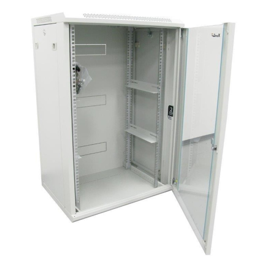 XtendLan 19" nástěnný rozvaděč 18U 600x600, nosnost 60 kg, skleněné kouřové dveře, rozložený, šedý