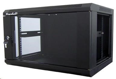 XtendLan 19" nástěnný rozvaděč 6U 600x600, nosnost 60 kg, skleněné kouřové dveře, svařovaný, černý
