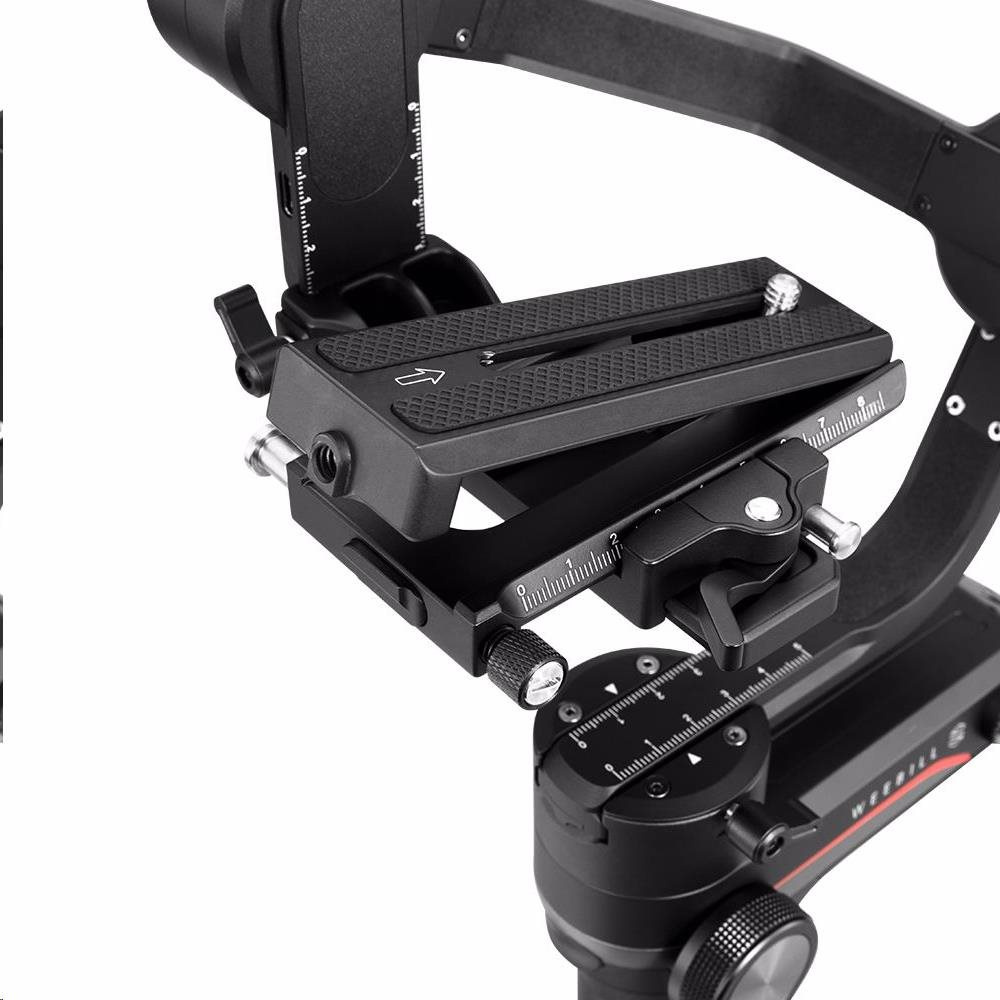 Weebill S používa rýchloupínaciu dosku 2 v 1 (Arca Swiss aj Manfrotto), čo umožňuje jednoduchšie nastavenie a rýchlejšie prepínanie medzi zariadeniami bez potreby opätovného vyváženia. Dizajn západky umožňuje jednoduché uzamknutie každej osi pre lepšiu rovnováhu a jednoduchšie skladanie stabilizátora.
