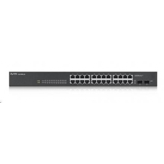 Zyxel GS1900-24 v2 26portový gigabitový webový inteligentný prepínač, 24x gigabitový RJ45, 2x SFP, bez ventilátora